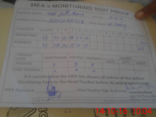 | Attendance Register | Head Teacher | MEA with School | Visit Proof |