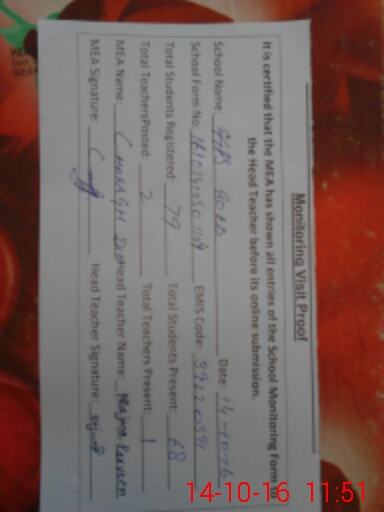 | Certified that this School was Inspected by the Undersigned MEA/DMO Today and the Information Stated Above is as Per Record. | |||||
