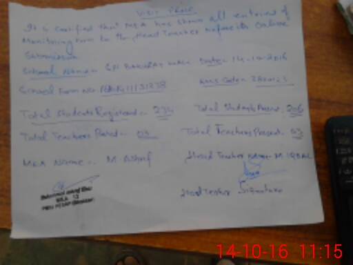 | Certified that this School was Inspected by the Undersigned MEA/DMO Today and the Information Stated Above is as Per Record. | |||||