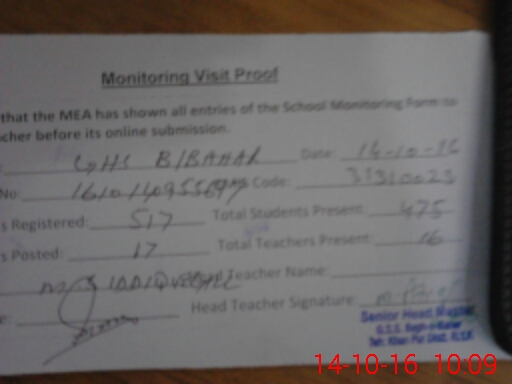 | Certified that this School was Inspected by the Undersigned MEA/DMO Today and the Information Stated Above is as Per Record. | |||||