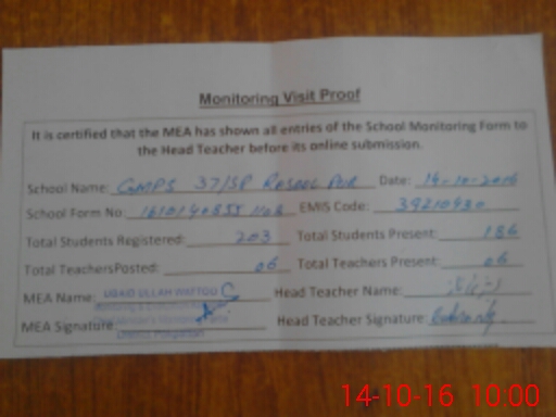 | EMIS Code: 39210430 | Name of School: GMPS CHAK 37/SP RASOOL PUR | |||