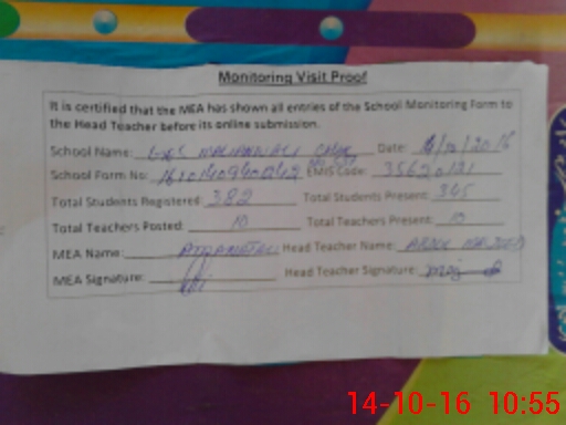 | Certified that this School was Inspected by the Undersigned MEA/DMO Today and the Information Stated Above is as Per Record. | |||||