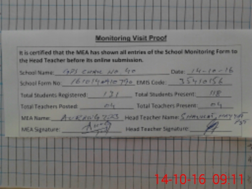 | Certified that this School was Inspected by the Undersigned MEA/DMO Today and the Information Stated Above is as Per Record. | |||||