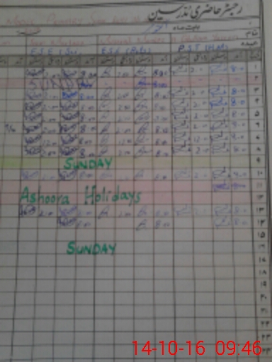 | CNIC | Full Name | Designation | R/C | Absence During Last Calender Month |