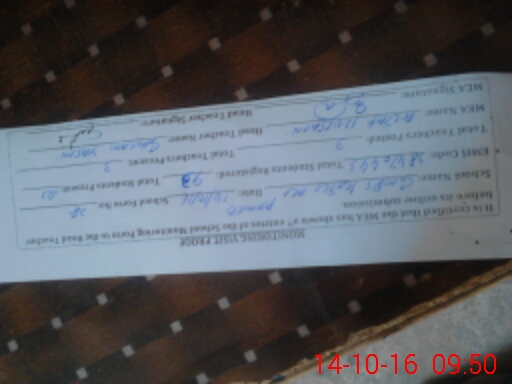 | Attendance Register | Head Teacher | MEA with School | Visit Proof |