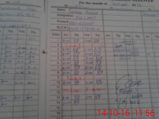 | CNIC | Full Name | Designation | R/C | Absence During Last Calender Month |