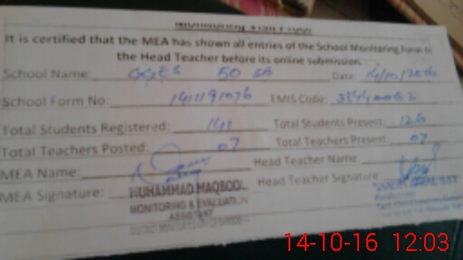 | Certified that this School was Inspected by the Undersigned MEA/DMO Today and the Information Stated Above is as Per Record. | |||||