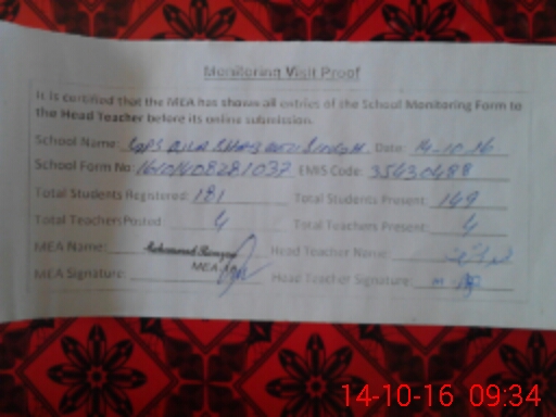 | Certified that this School was Inspected by the Undersigned MEA/DMO Today and the Information Stated Above is as Per Record. | |||||