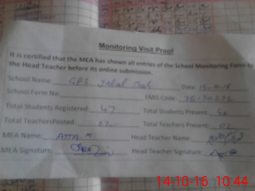 | EMIS Code: 36130272 | Name of School: GPS JALAL SHAH | |||