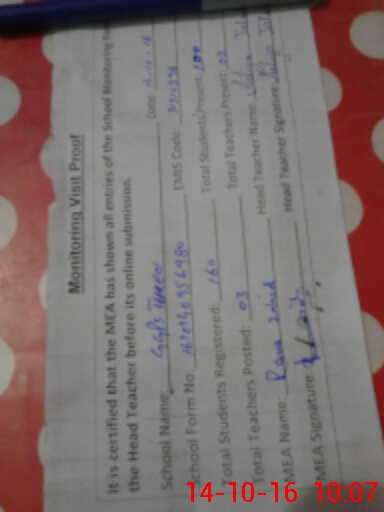 | Certified that this School was Inspected by the Undersigned MEA/DMO Today and the Information Stated Above is as Per Record. | |||||