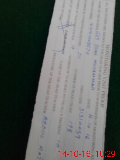 | Monitoring Date: 14-10-2016 | Start Time: 14-10-2016 10:03 AM | End Time: 14-10-2016 10:34 AM | Name of MEA: Za**** Hu**** | |