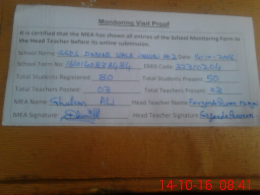 | Certified that this School was Inspected by the Undersigned MEA/DMO Today and the Information Stated Above is as Per Record. | |||||