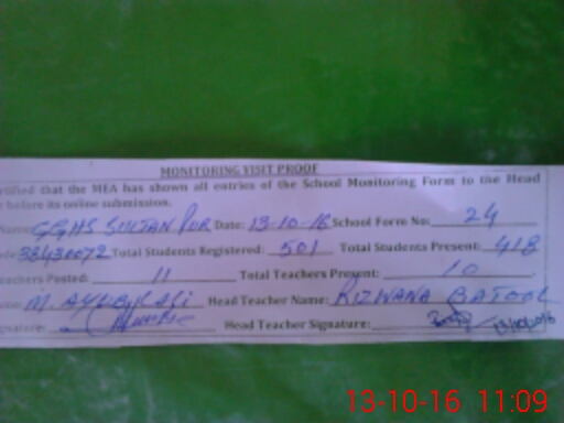 | EMIS Code: 38430072 | Name of School: GGHS SULTAN PUR | |||