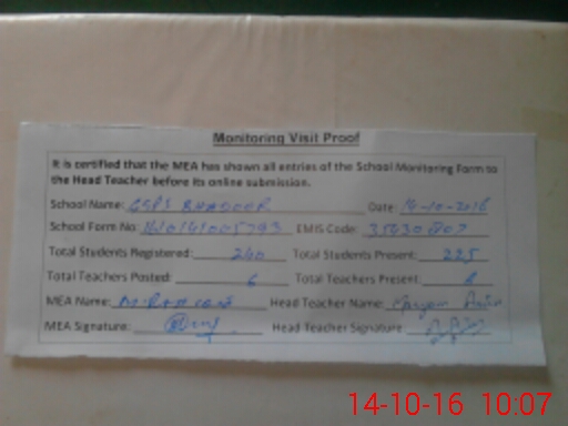| Certified that this School was Inspected by the Undersigned MEA/DMO Today and the Information Stated Above is as Per Record. | |||||