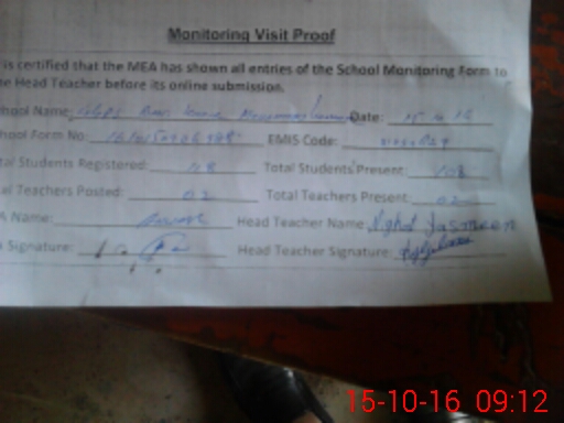 | Certified that this School was Inspected by the Undersigned MEA/DMO Today and the Information Stated Above is as Per Record. | |||||