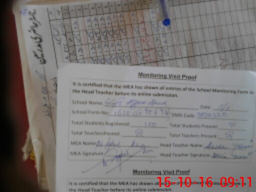 | Attendance Register | Head Teacher | MEA with School | Visit Proof |