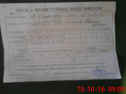 | Certified that this School was Inspected by the Undersigned MEA/DMO Today and the Information Stated Above is as Per Record. | |||||