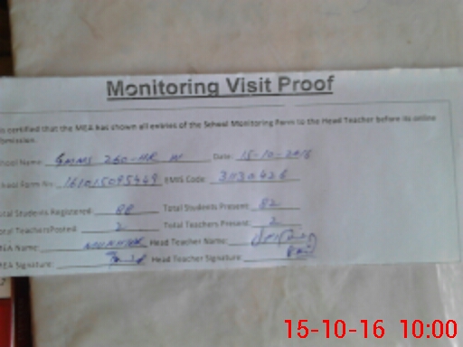 | Attendance Register | Head Teacher | MEA with School | Visit Proof |