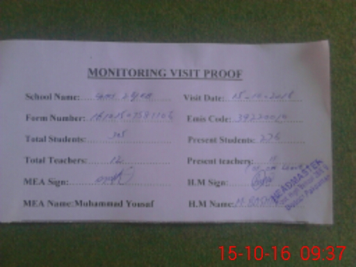 | Certified that this School was Inspected by the Undersigned MEA/DMO Today and the Information Stated Above is as Per Record. | |||||