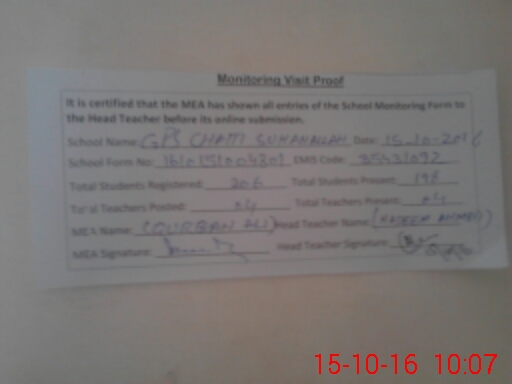 | EMIS Code: 35431092 | Name of School: GPS CHATTI (DERA SUBHAN ALLAH) | |||