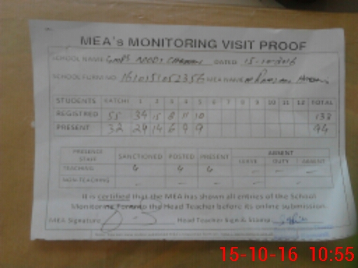 | Attendance Register | Head Teacher | MEA with School | Visit Proof |