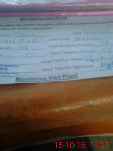 | Certified that this School was Inspected by the Undersigned MEA/DMO Today and the Information Stated Above is as Per Record. | |||||