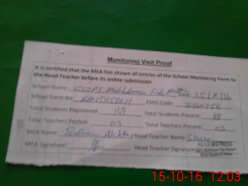 | Certified that this School was Inspected by the Undersigned MEA/DMO Today and the Information Stated Above is as Per Record. | |||||