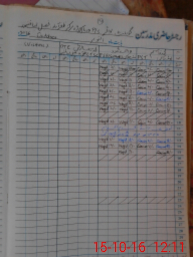 | CNIC | Full Name | Designation | R/C | Absence During Last Calender Month |