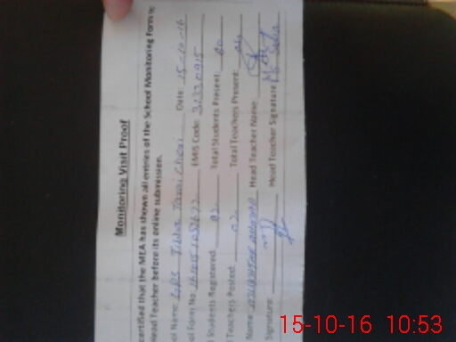 | Attendance Register | Head Teacher | MEA with School | Visit Proof |