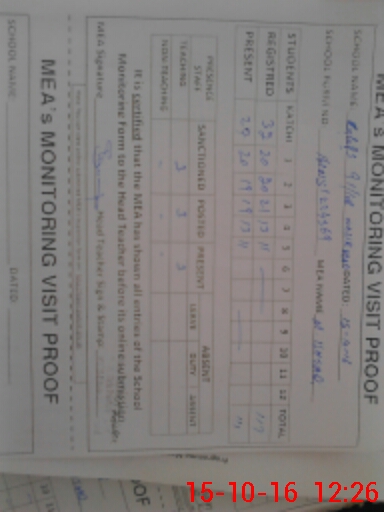 | Monitoring Date: 15-10-2016 | Start Time: 15-10-2016 11:41 AM | End Time: 15-10-2016 12:28 PM | Name of MEA: M.Is**** (S**** 03**** | |