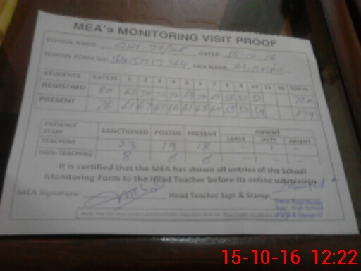 | Certified that this School was Inspected by the Undersigned MEA/DMO Today and the Information Stated Above is as Per Record. | |||||