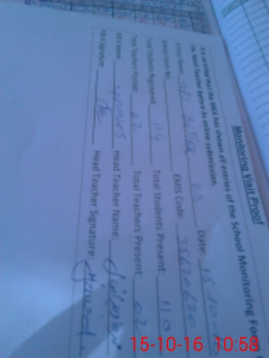 | Attendance Register | Head Teacher | MEA with School | Visit Proof |