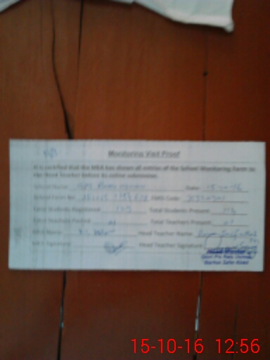 | Attendance Register | Head Teacher | MEA with School | Visit Proof |