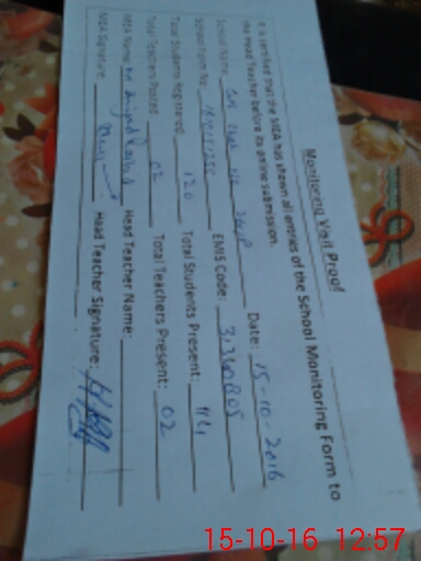 | School Visited by School Health & Nutrition Supervisor (No. of Visits) | 1 | Name1: | SHAHID | Name2: | |