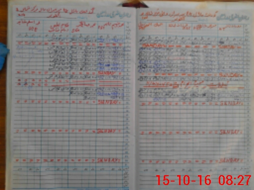 | CNIC | Full Name | Designation | R/C | Absence During Last Calender Month |