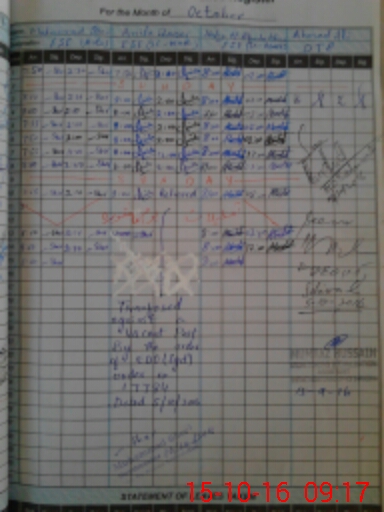 | Monitoring Date: 15-10-2016 | Start Time: 15-10-2016 08:38 AM | End Time: 15-10-2016 09:21 AM | Name of MEA: MU**** HU**** | |