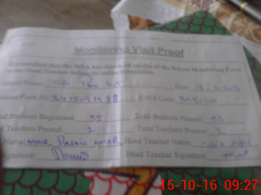 | Attendance Register | Head Teacher | MEA with School | Visit Proof |