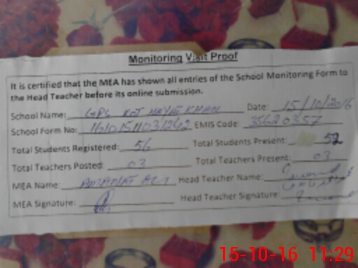 | EMIS Code: 35620357 | Name of School: GPS KOT HAYAT KHAN | |||