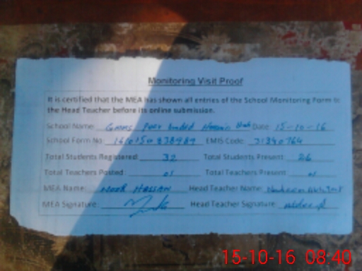 | Certified that this School was Inspected by the Undersigned MEA/DMO Today and the Information Stated Above is as Per Record. | |||||