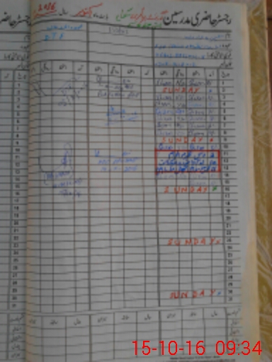 | CNIC | Full Name | Designation | R/C | Absence During Last Calender Month |