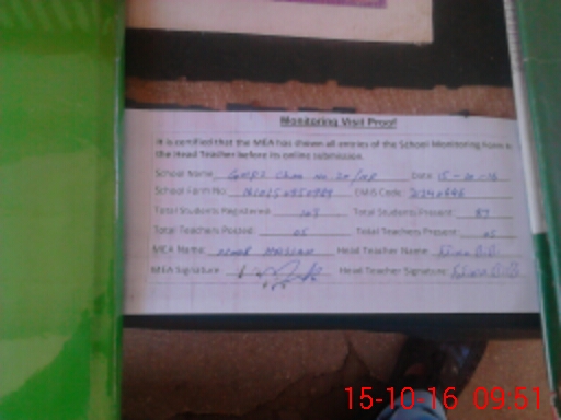 | Attendance Register | Head Teacher | MEA with School | Visit Proof |