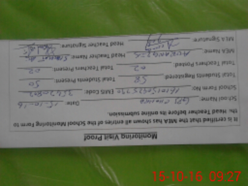 | Attendance Register | Head Teacher | MEA with School | Visit Proof |