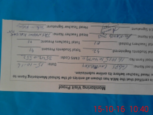| Attendance Register | Head Teacher | MEA with School | Visit Proof |
