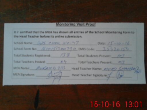 | EMIS Code: 35420154 | Name of School: GPS CHAK 47 | |||