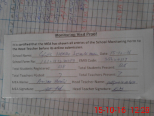 | Attendance Register | Head Teacher | MEA with School | Visit Proof |