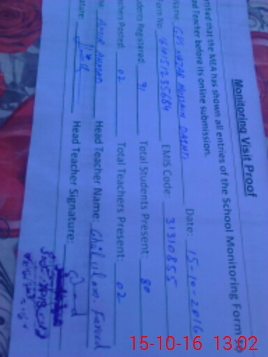 | EMIS Code: 31310855 | Name of School: GPS NAZAR HUSSAIN DASHTI (After Noon) | |||