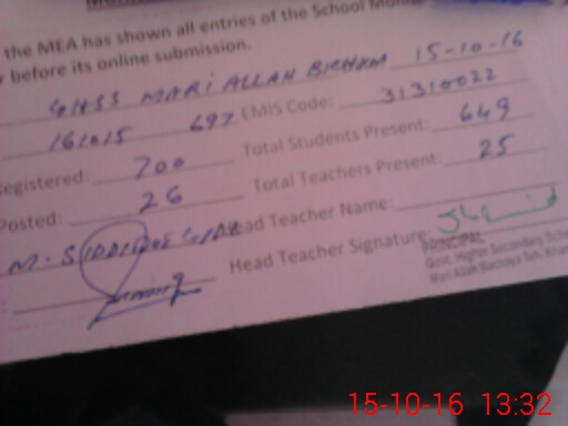 | EMIS Code: 31310022 | Name of School: GHSS MARI ALLAH BACHAYA | |||