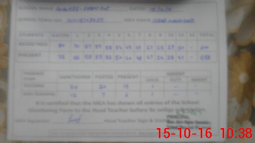 | Certified that this School was Inspected by the Undersigned MEA/DMO Today and the Information Stated Above is as Per Record. | |||||