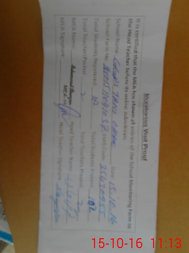| Attendance Register | Head Teacher | MEA with School | Visit Proof |