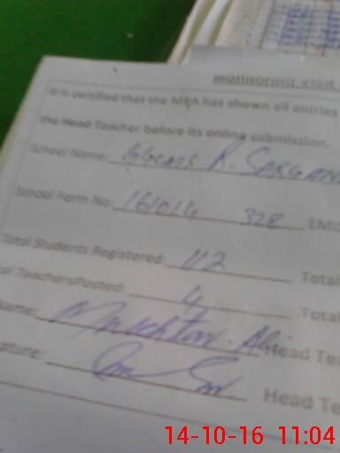 | Certified that this School was Inspected by the Undersigned MEA/DMO Today and the Information Stated Above is as Per Record. | |||||